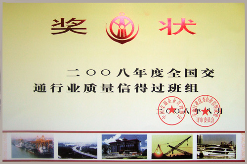> 2008年度全國交通行業(yè)質(zhì)量信得過班組獎狀