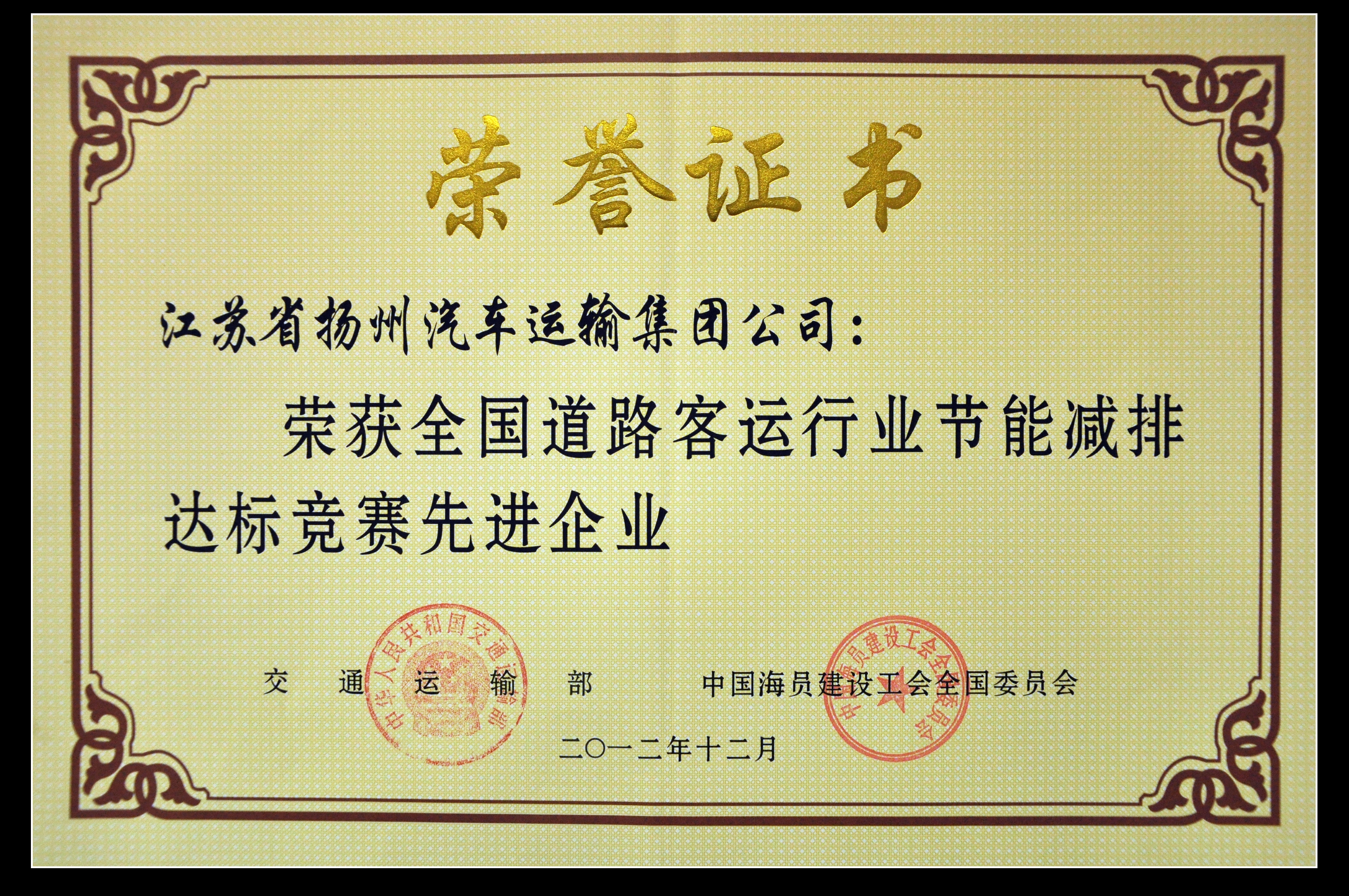 我司榮獲“全國道路客運行業節能減排達標競賽先進企業”稱號