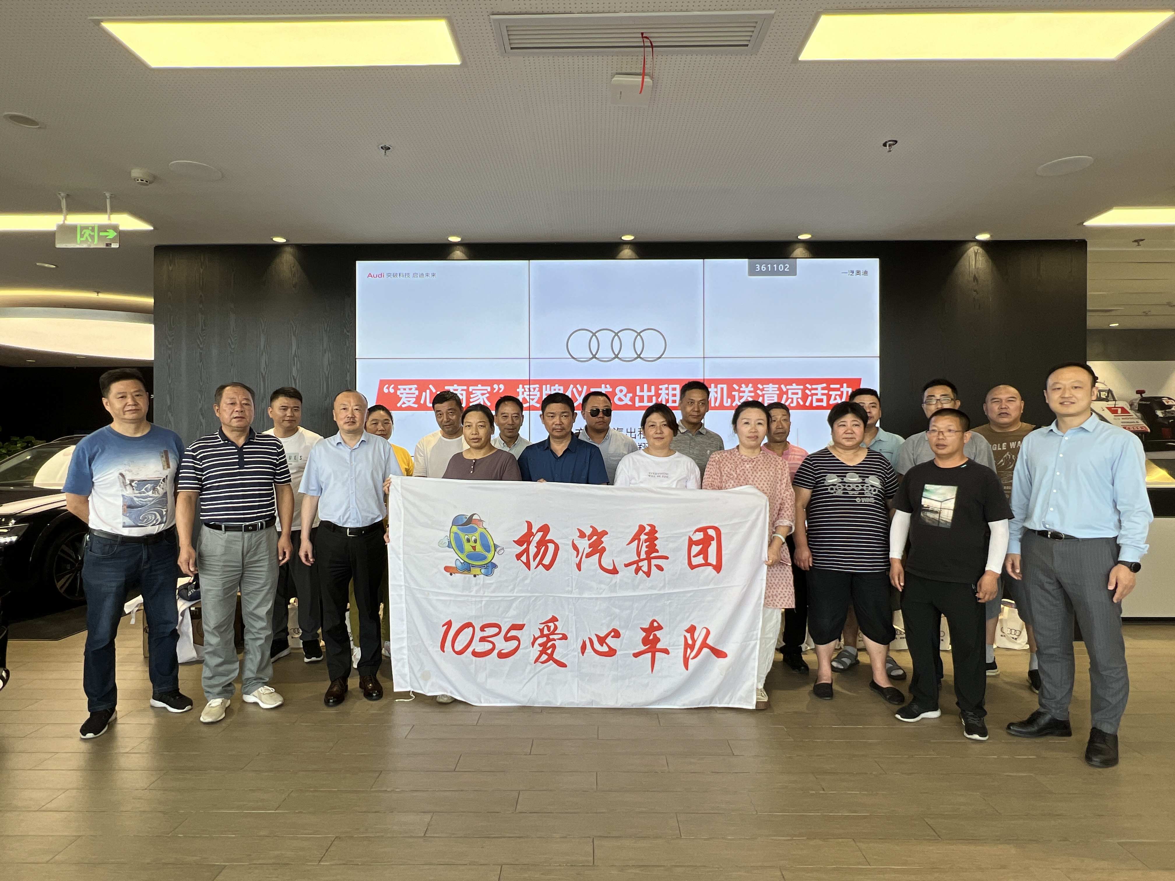8月8日 ,由揚汽出租 “1035”愛心車隊、揚州捷翔奧迪共同承辦的“愛心商家”授牌儀式暨出租司機送涼爽活動在揚州捷翔奧迪4S店如期舉行。此次活動旨在更好地加強彼此投身公益方面的協作,進一步弘揚“關愛他人、奉獻社會”的正能量,更好地踐行社會主義核心價值觀。